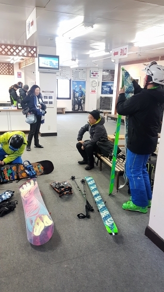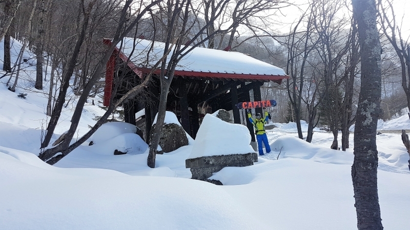 An der Talsation ist uns zunächst aufgefallen, dass neben uns noch zwei Freerider aus Neuseeland sowie eine Gruppe mit Guide aus Niseko vor Ort war. Ansonsten war weit und breit keine Wintersportler zu sehen. Einige japanische Fototouristen waren ebenfalls vor Ort, aber die sollten uns nicht am Powdern stören. An der Liftkassen hatte sich unsere Vermutung bewahrheitet, dass der Sessellift im oberen Teil des Skigebiets aufgrund von ‚Wartungsarbeiten‘ geschlossen war. Wieso man in der Hochzeit der Wintersaison den Sessellift für insgesamt ca. 5 Wochen schließt, bleibt das Geheimnis des Liftbetreibers. Einen Tagesskipass konnte aus diesem Grund nicht erworben werden, so dass wir uns Einzeltickets für die Seilbahn gekauft haben. Ab der vierten Fahrt waren die weiteren Fahrten gratis 😉