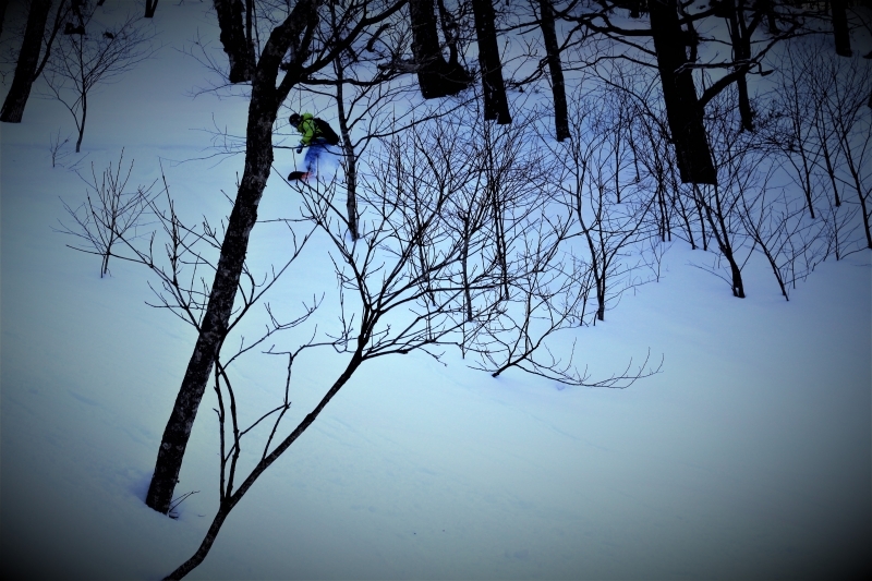 Nachdem wir für den Weg zu den Fumarole aufgrund den Sichtverhältnissen viel zu viel Zeit verloren hatten, entschlossen wir uns schweren Herzens den geplanten Aufstieg des Asahi Dake abzublasen. So hatten wir wenigstens genügend Zeit das Skigebiet ausgiebig zu erkunden. Zu unserer Überraschung war bereits relativ viel zerfahren und außer einem bereiten aber relativ kurzen freien Hang hatte das Gebiet nicht viel zu bieten. Zudem waren wir darüber erstaunt, dass hauptsächlich Freerider im Gebiet unterwegs waren und die zwei vorhandenen Pisten nur als Zubringer verwendet wurden. Nichtsdestrotz waren die Schneemassen und die Schneequalität überragend, so dass wir für den Rest des Tages viel Spaß im japanischen Powder hatten. Davon konnten wir nicht genug bekommen. Nach dem Skitag machten wir uns auf dem Weg zur nächsten Unterkunft in Furano.