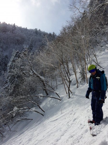 Von der Bergstation steht den Wintersportlern 600 hm freie Abfahrt bevor. Eine planierte Piste mit Markierungen etc. gibt es nicht. So ist es jedem selbst überlassen seinen Weg zur Talstation zu finden. Wir fanden uns relativ schnell zu recht und hatten trotz ausbleibendem Schneefall in den vorigen Tagen keine Probleme noch unberührten Powder zu finden. Das Gebiet ist relativ Steil und die Bäume stehen sehr eng, so dass es fahrtechnisch für den ersten Tag durchaus eine Herausforderung war. Nichtdestotrotz hatten wir tolle Runs, die definitiv Lust auf mehr machten. Für die letzte Abfahrt hatten wir uns entschlossen die 250 Hm zur Bergstation des Sessellifts mit eigener Kraft zu überwinden. Die nachfolgende Abfahrt war traumhaft schön, so dass die Strapazen sofort vergessen waren!
