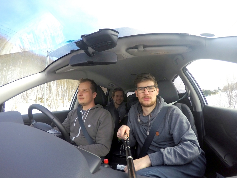 Das Ziel für die ersten Spuren im japanischen Schnee sollten die Lifte in Daisetsuzan Sounkyo sein. Das ‚Skigebiet‘ liegt am Fuße des Mount Kurodakes im Daisetsuzan National Park. Das Gebiet besteht aus zwei Liften mit einer Seilbahn und einem Sessellift im oberen Teil des Skigebiets. Die Seilbahn überwindet dabei ca. 600 Hm bis auf 1.100 m. Der Sessellift schließt direkt dort an und bringt die Gäste theoretisch bis auf 1.350 m. Die Entfernung zum Skigebiet von Asahikawa waren ca. 70 km. Da die Geschwindigkeitsbegrenzung auf japanischen Landstraßen unglaubliche 50 km/h beträgt, haben wir die 70 km in ca. 1,5 Stunden zurückgelegt. Kurz vor Ankunft an der Talstation fiel Haris auf, dass er seine Skischuhe in der Wohnung vergessen hatten. So hatte Haris die Ehre die Strecke an diesem Tag insgesamt viermal zurückzulegen. In der Zwischenzeit konnten Mr. Fleur und Luca das Gebiet erkunden, um die besten Powderhänge zu finden.