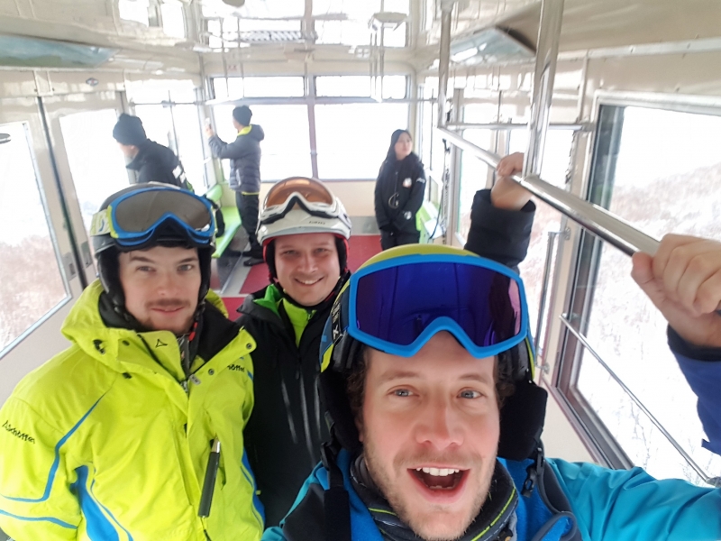 Pünktlich um neun Uhr standen wir am nächsten am Lift, um die erste Gondel zu nehmen und waren überrascht, dass wir offensichtlich nicht die einzigen waren. Japaner nutzen das Wochenende gerne, um ebenfalls auf die Piste zu gehen. Das angenehme ist jedoch, dass Japaner nicht bzw. kaum abseits der Piste unterwegs sind. Die Bedingungen an diesem Tag waren genial. Es wurden zwar offiziell nur 15 – 20 cm Neuschnee im Schneebericht gemeldet, aber entweder untertreiben Japaner maßlos oder 20 cm bedeuten in westlichen Gefilden etwas anderes als in Japan. Es war unglaublich tief und fluffig. Ein genialer Tag!