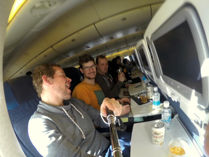 Während des Fluges haben wir versucht möglichst viel der vorhanden Board-Bar zu probieren und Lucas Geburtstag zumindest entsprechend zu begießen.